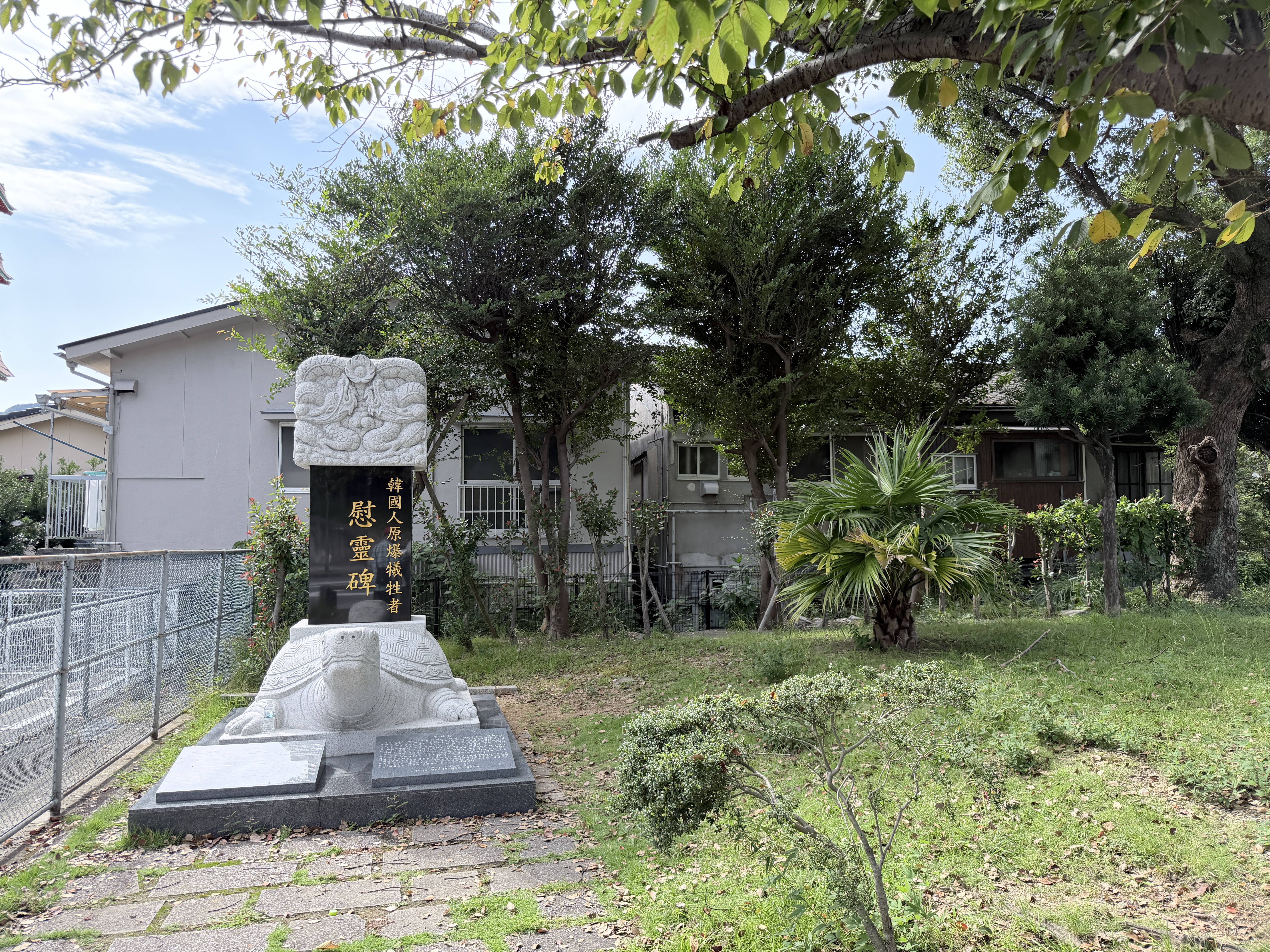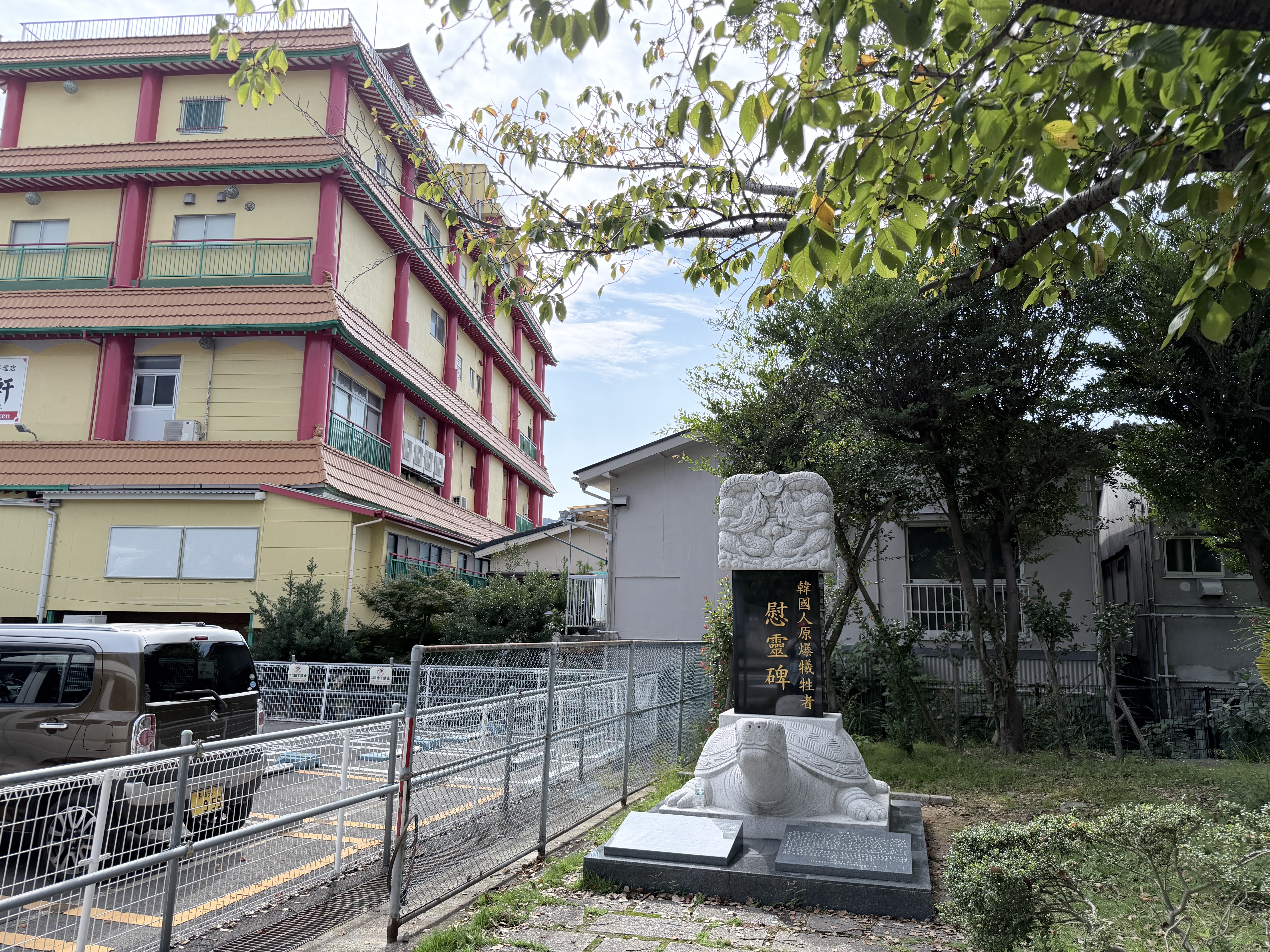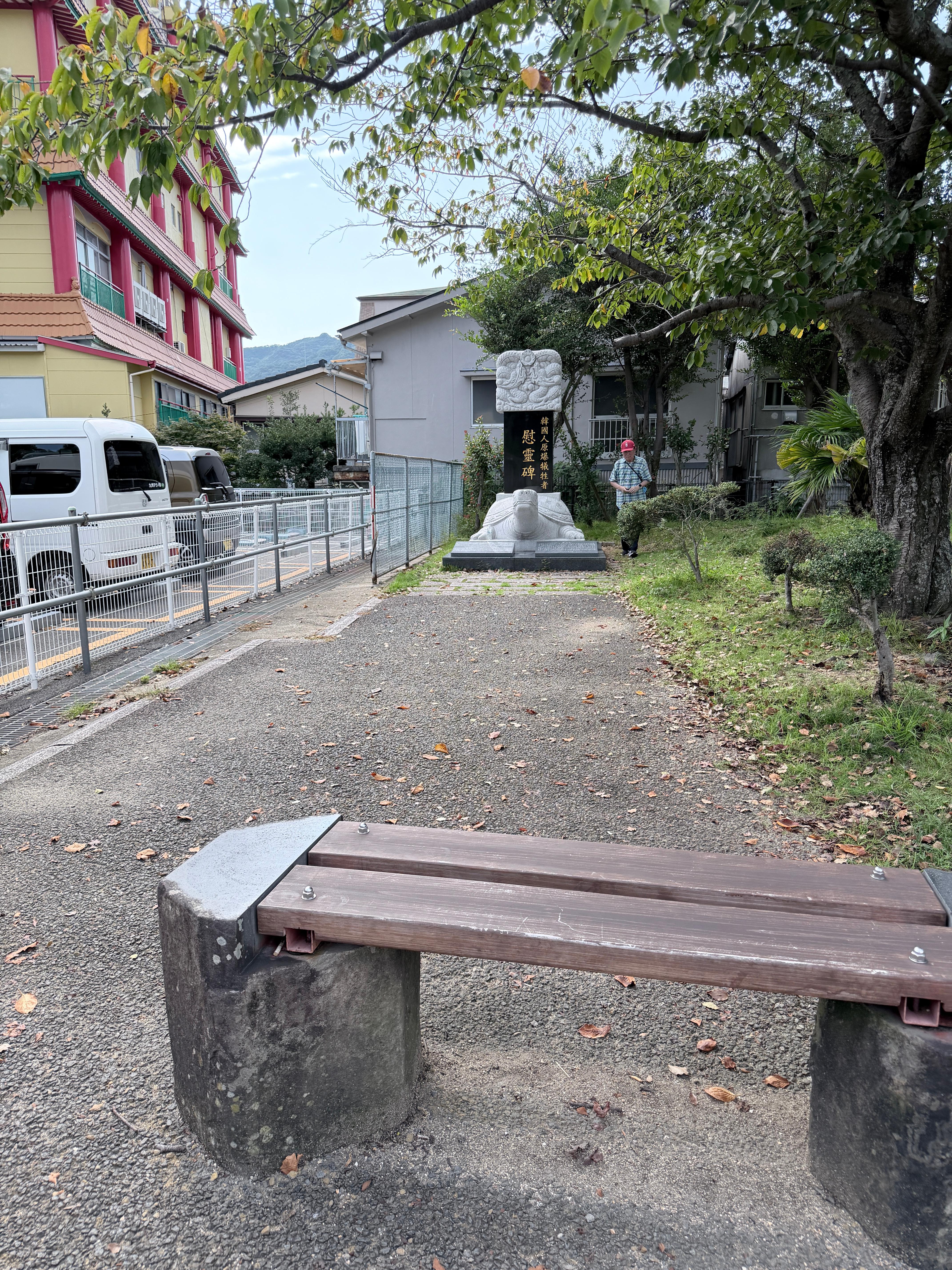 아래의 공원을 지나서 한국인을 위한 추모비는