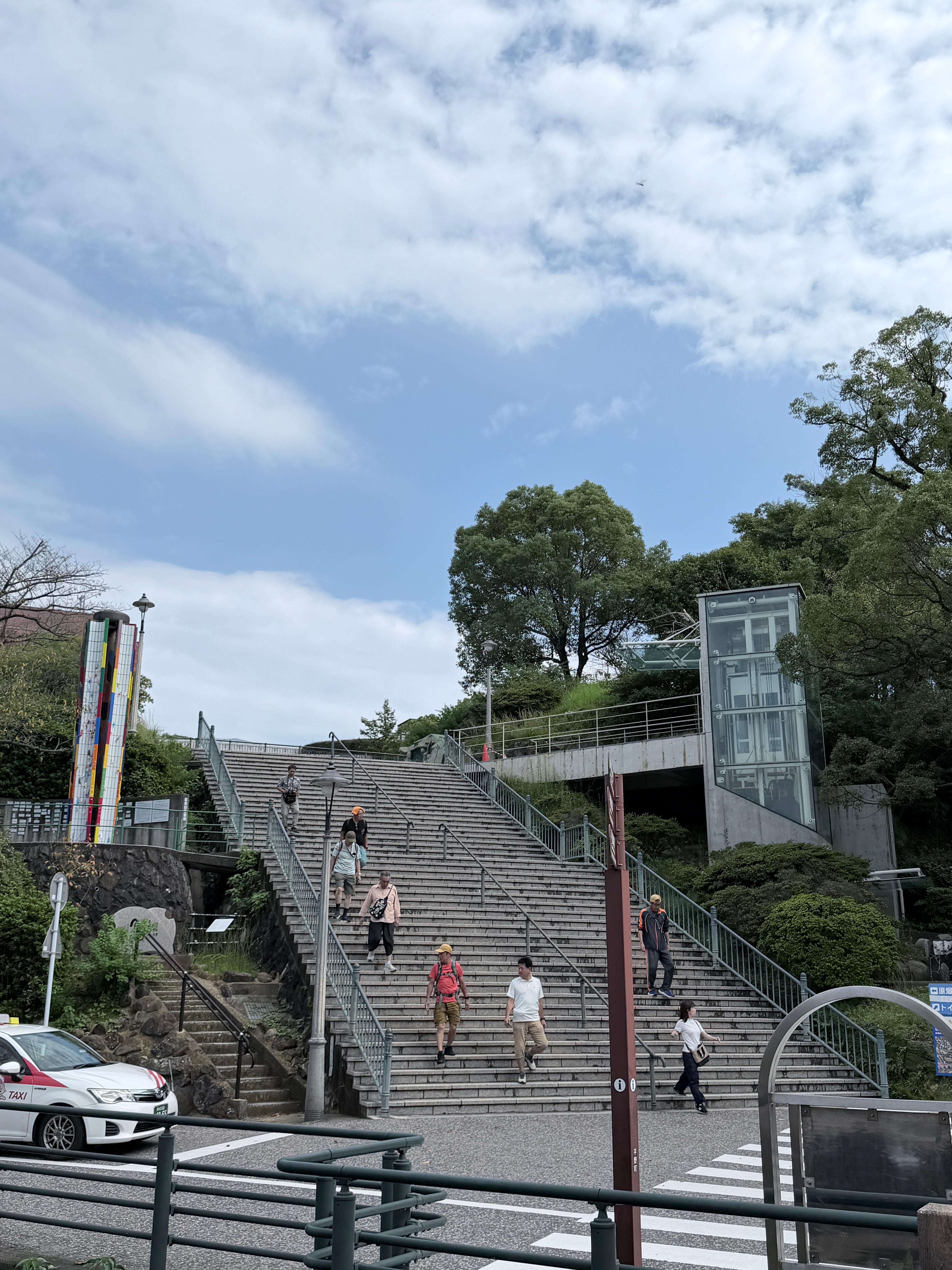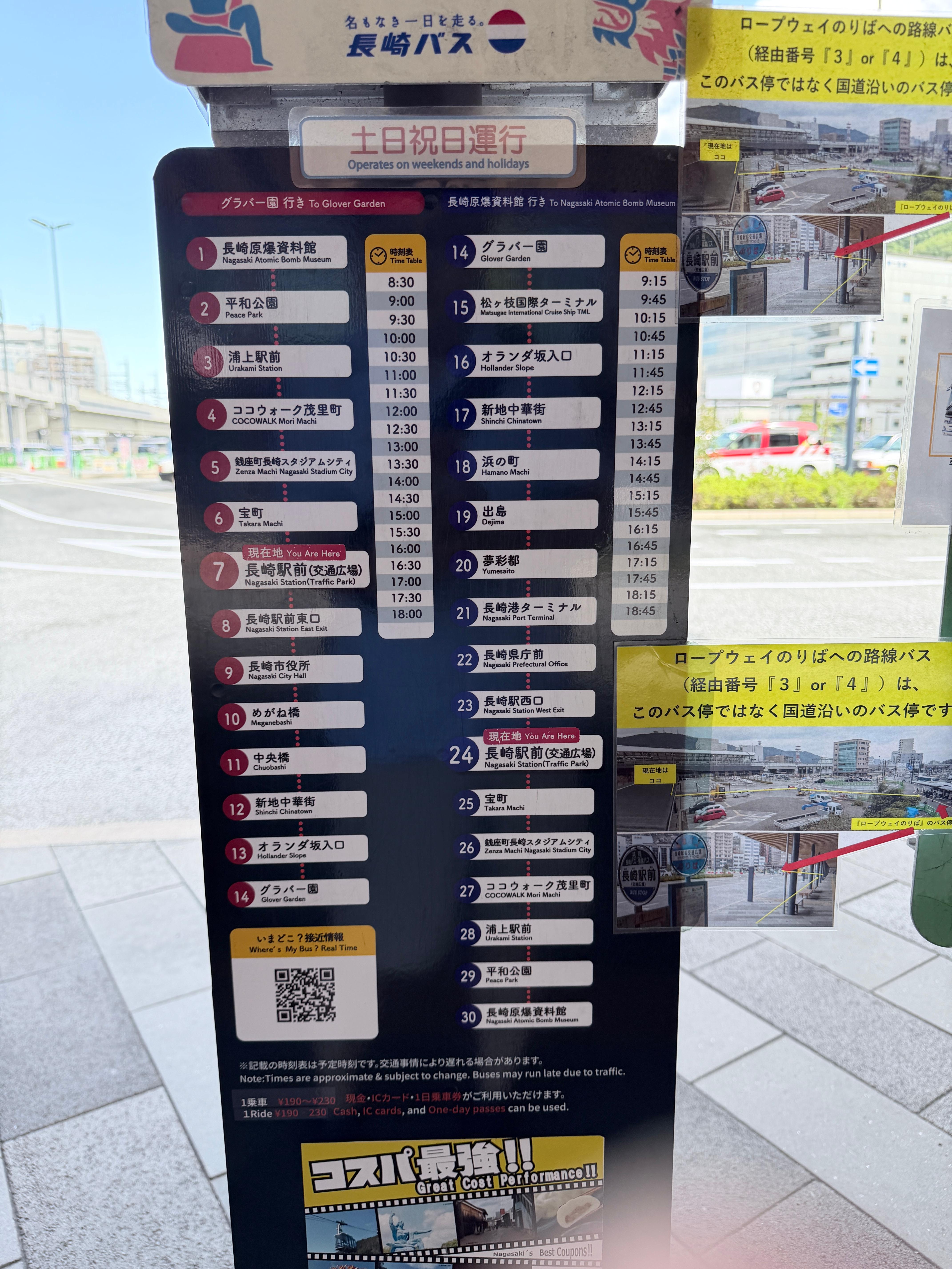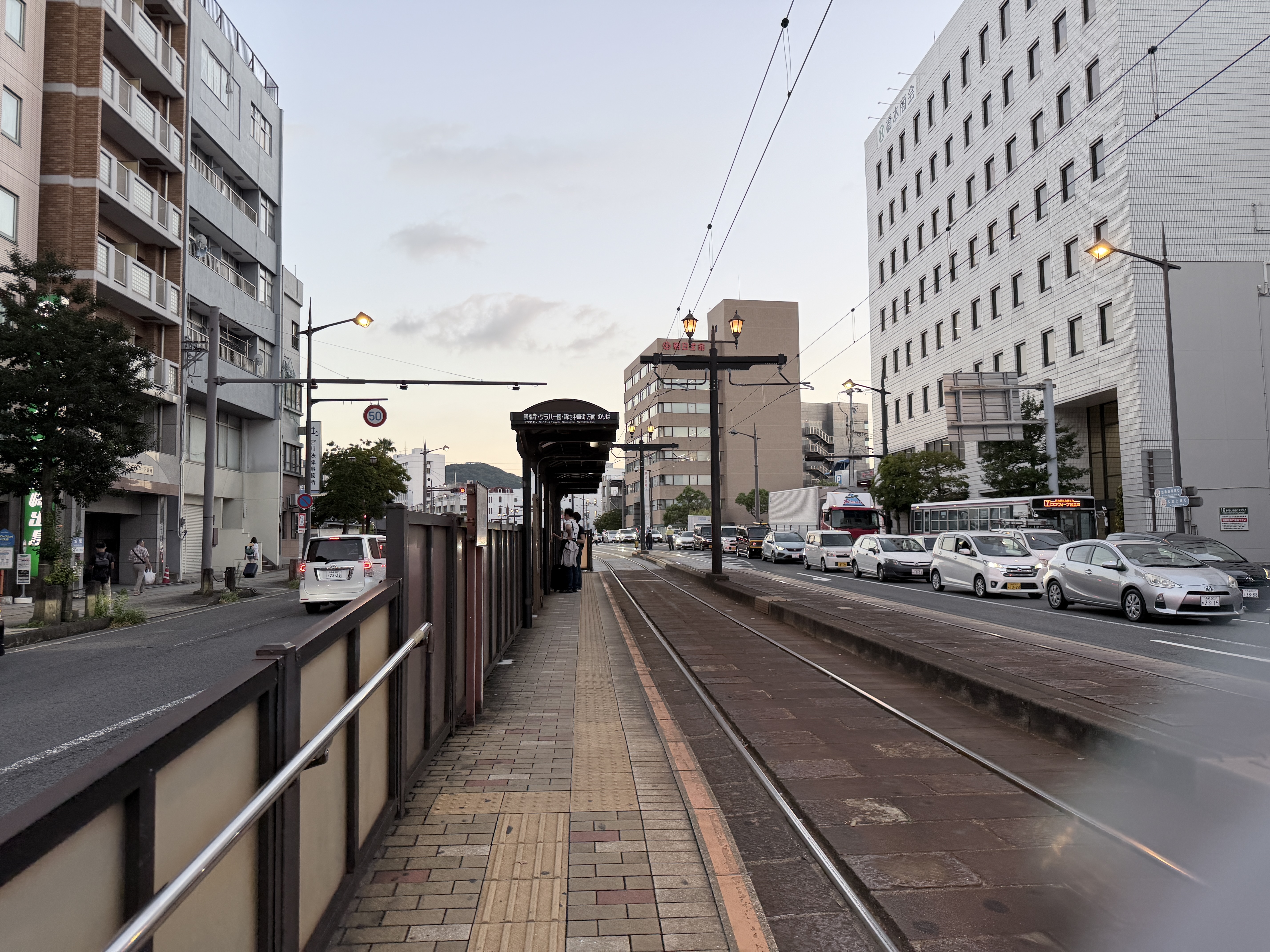 저희가 묵었던 호텔에서 걸어서는 10분이라고 써져있고, 전차를 타면 3-4정거장이지만. 나가사키는 살짝 언덕이 있습니다. 젋은 분들은 걷기 좋으실거에요. 나이있는 가족분이 있으면, 전차 이용하세요. 전차도 타보시고 좋을거 같아요.