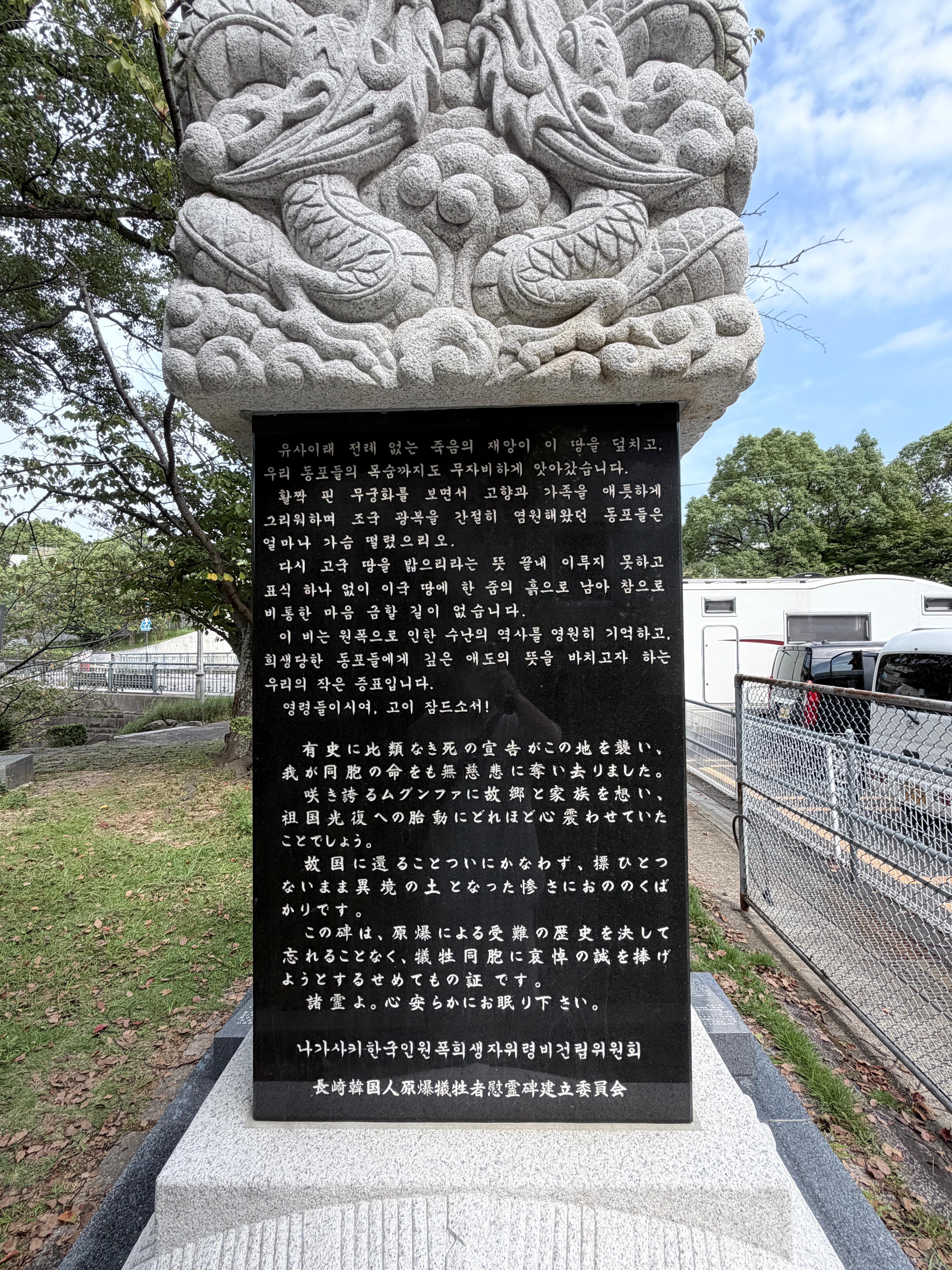 마음이 아픈건. 우리나라의 추모비는 이곳 평화공원에 있지 않고, 조금 떨어진 곳에 위치하고 있습니다. 워낙에 많은 강제 동원된 조선인 노동자등 많은 한인들이 희생되었음에도 이곳이 아닌, 다른곳에 위치하고 있습니다. 평화공원 내 추모비는 대부분 일본 지자체, 일본 시민단체, 해외 국가들의 공식 기증으로 이루어졌지만,