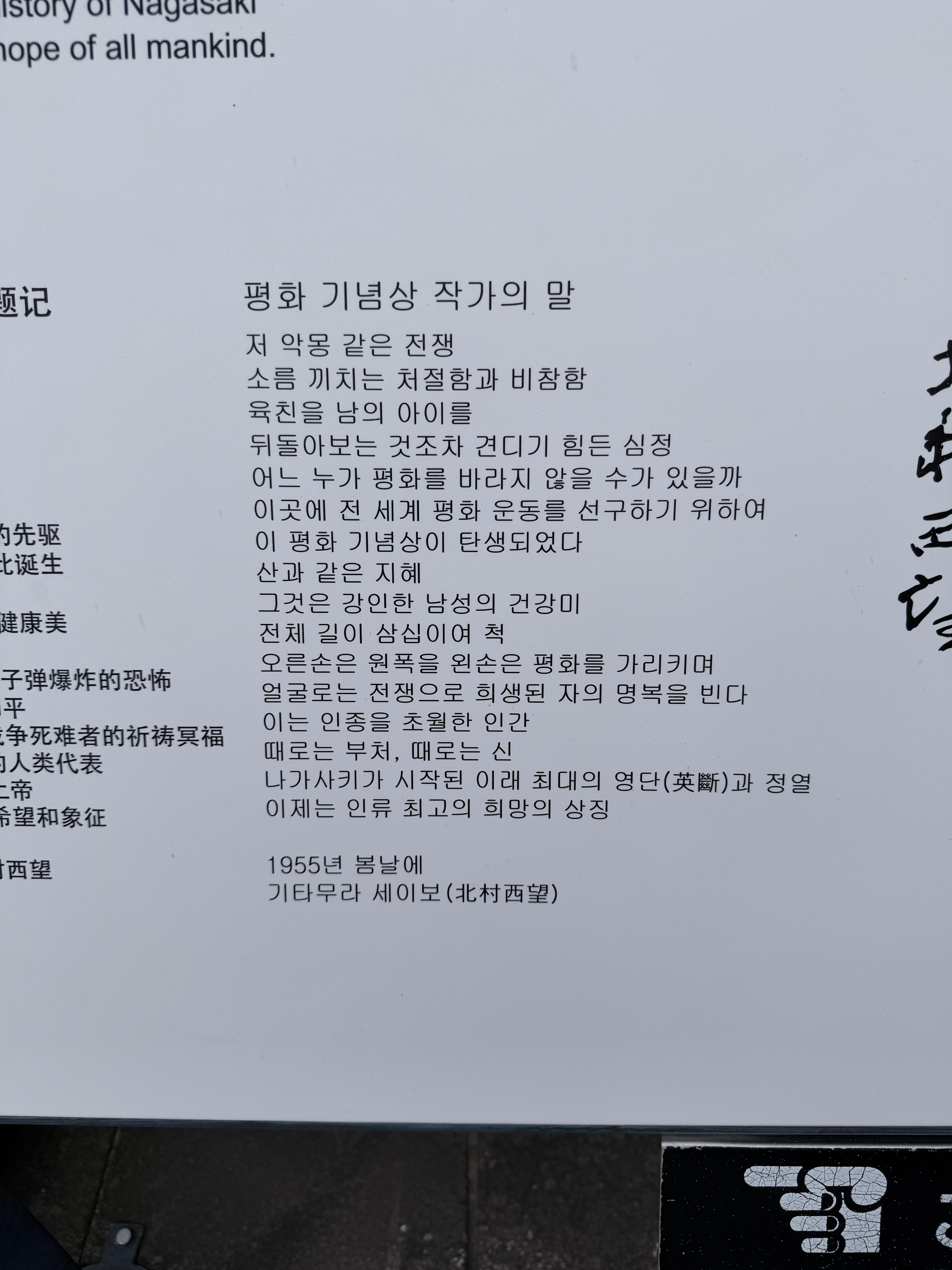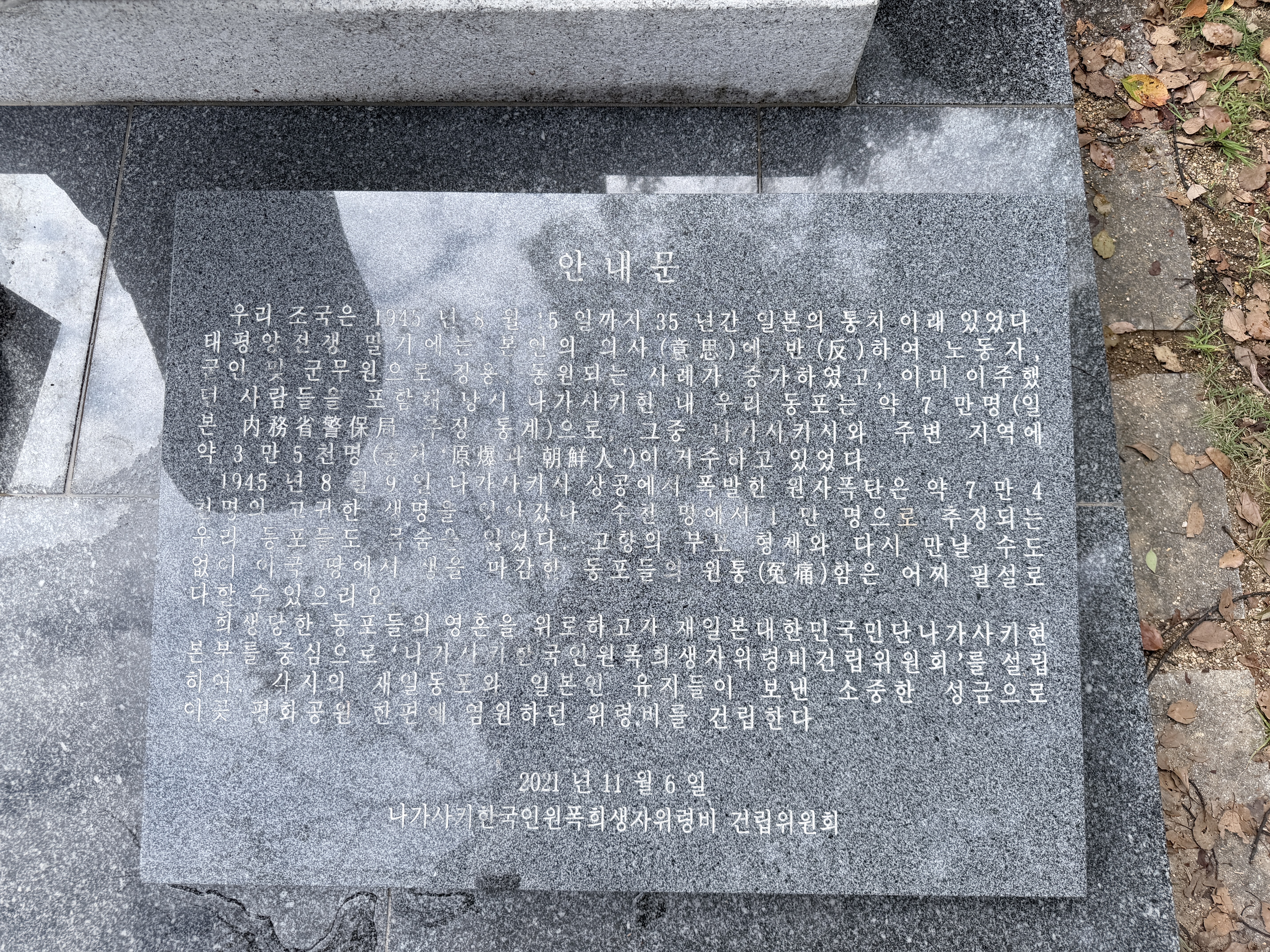 [나가사키 원폭 한국인 희생자 추도비] 입니다.
