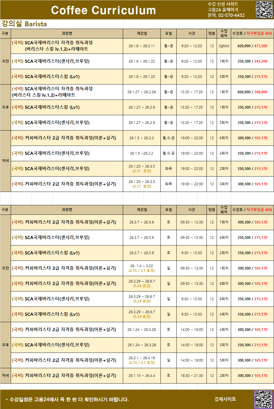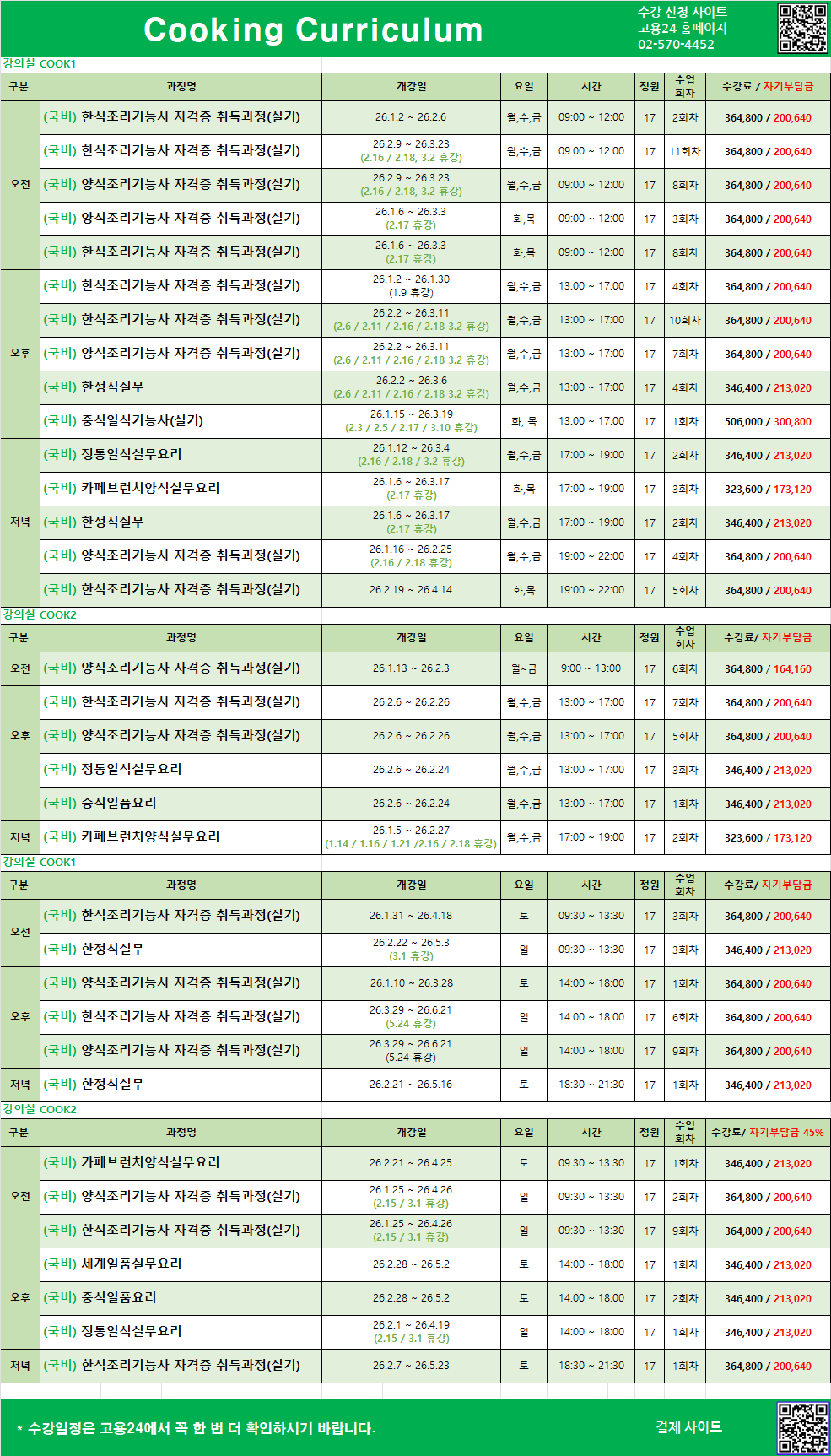 * 일정은 갑자기 변경될 수 있습니다. * 결석 통보 3일전에 수업 차감이 됨을 알려드립니다. * 등록한 회차권,정규 수업은 3개월 안에 모두 소진하셔야합니다. * 계좌이체. ㈜시사아카데미(강남) 신한은행 140 011 897057 * 1회 8만원 / 5회 30만원 / 10회 55만원